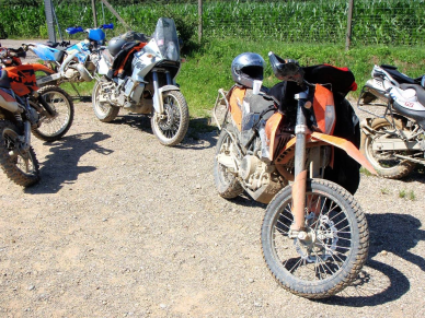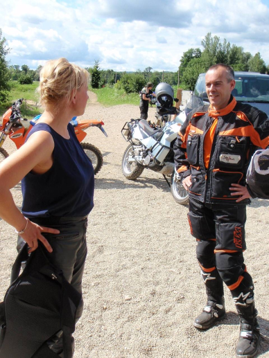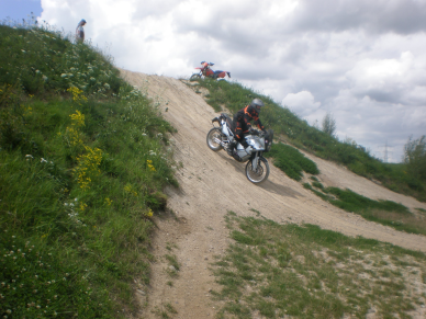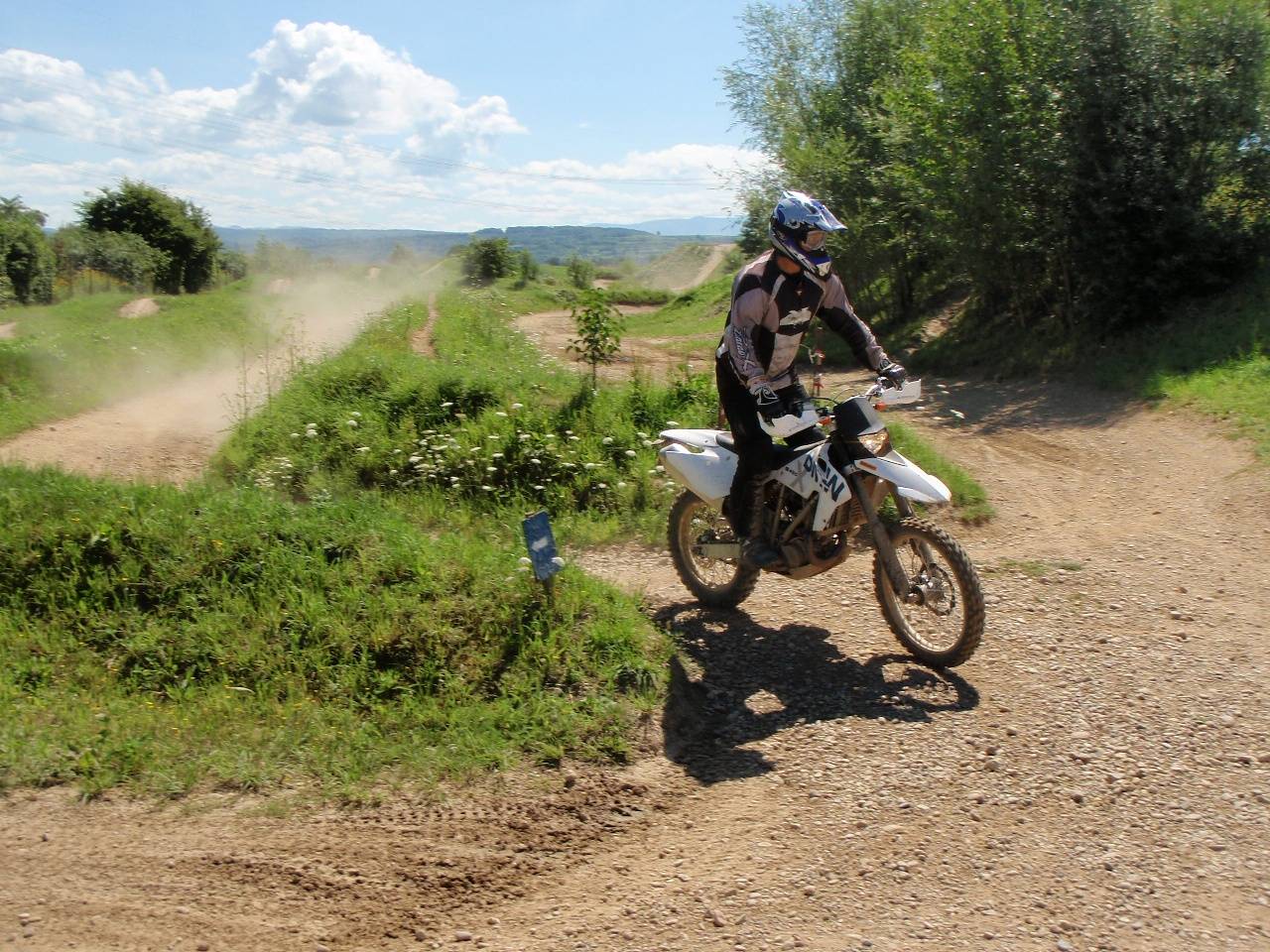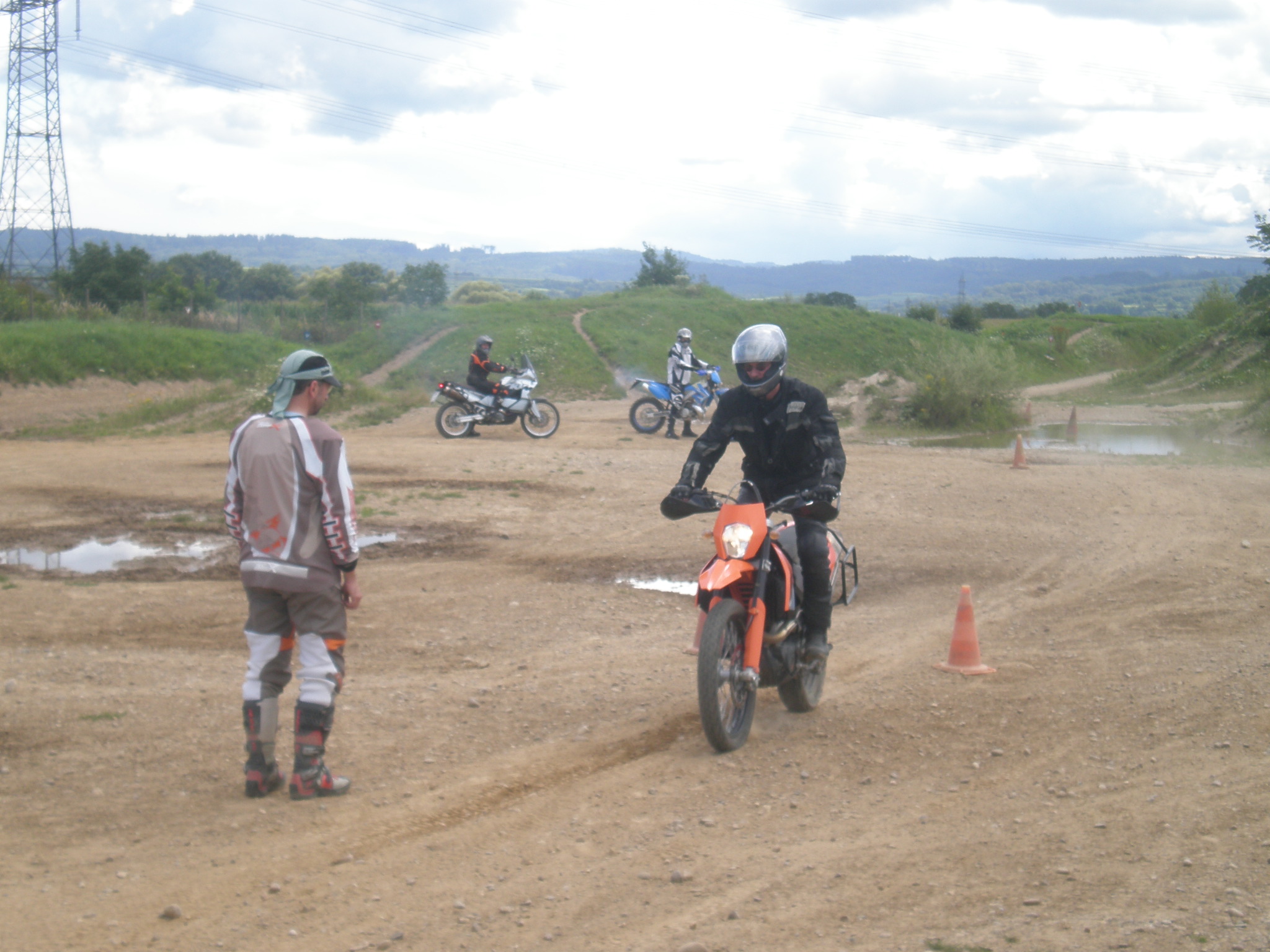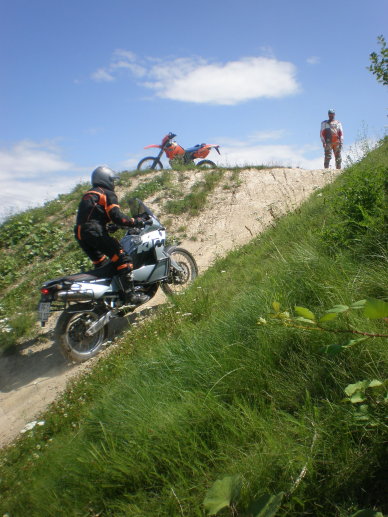Kurzentschlossen die Anmeldung für ein Wochenende mit Anleitung fürs Fahren im Gelände. Meine Kiste ist neben den anderen die Größte und Schwerste und ich mit 172 cm und ca. 65 kg nicht grade der Herkules ;). Mit dabei eine KTM LC4 690, eine Honda Dominator, eine Sachs EX 125, eine BMW GX 450, sowie 2 KTM EXC 400 und eine TM 350 (Zweitakter) sowie zwei BMW 650 GS.